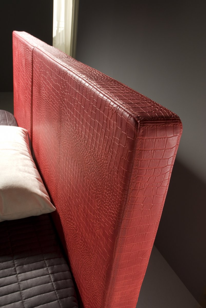 Linee dritte e semplici che conferiscono alla zone notte semplicità ma anche particolarità grazie al suo rivestimento in ecopelle coccodrillo.