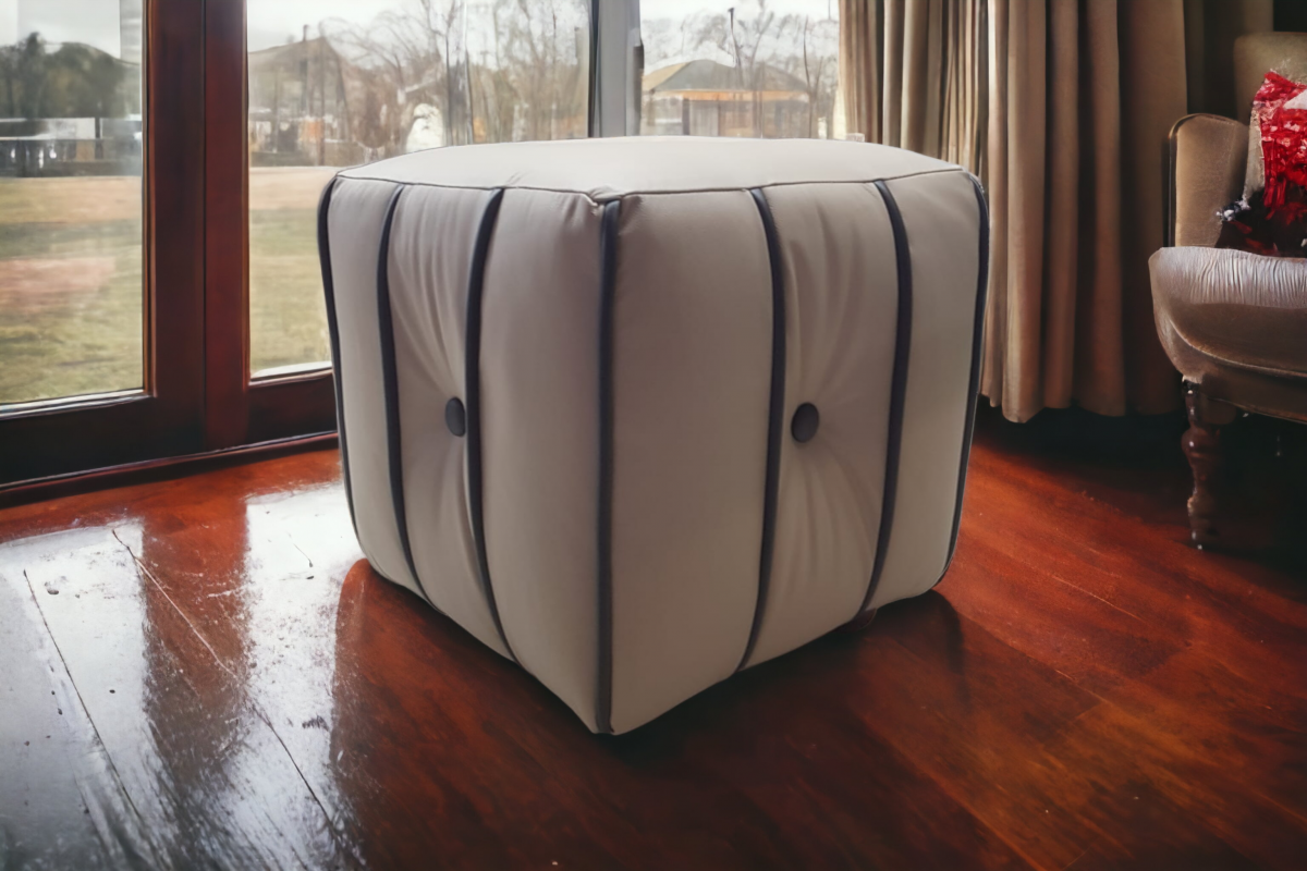 Pouff arredo realizzato in VERA PELLE.
